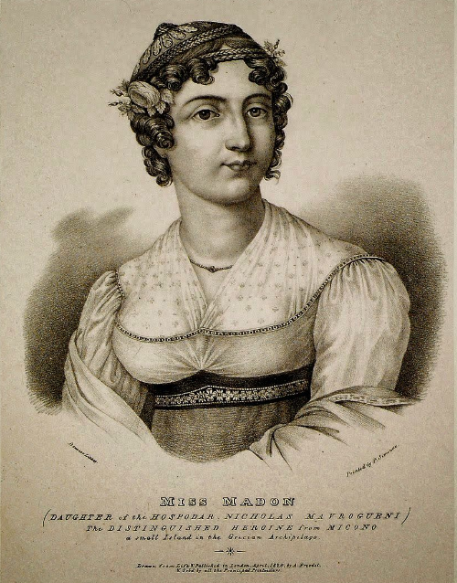 Η Μαντώ Μαυρογένους ως γυναίκα ήταν το αντίθετο της Μπουμπουλίνας: εύθραυστη ομορφιά, λεπτή και λυγερή κορμοστασιά, μεγαλωμένη στην Τεργέστη με ευρωπαϊκή ανατροφή και παιδεία. Μυήθηκε στον Αγώνα, διέθεσε όλη την πατρική περιουσία στον απελευθερωτικό αγώνα, ενώ έλαβε και η ίδια μέρος σε πολλές επιχειρήσεις. Η φήμη της γρήγορα ξεπέρασε τα σύνορα του ελληνικού χώρου και από τη θέση αυτή η νεαρή Ελληνίδα απηύθυνε έκκληση βοήθειας στους Ευρωπαίους φιλέλληνες και κυρίως στις Αγγλίδες και Γαλλίδες.