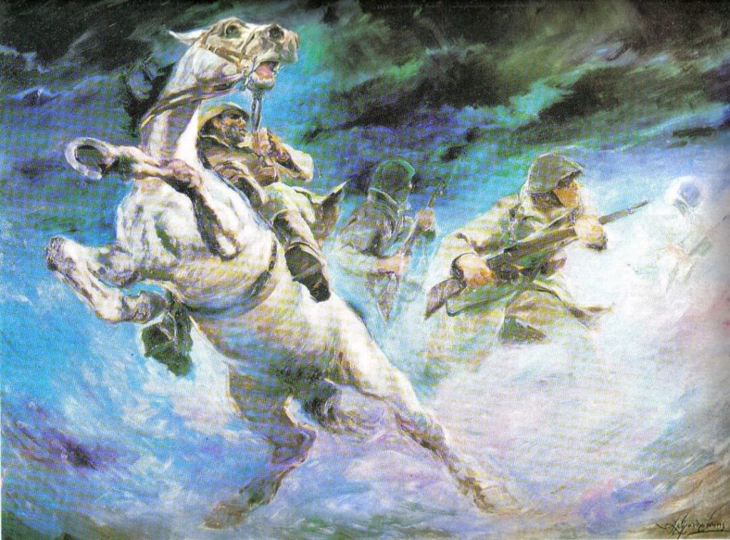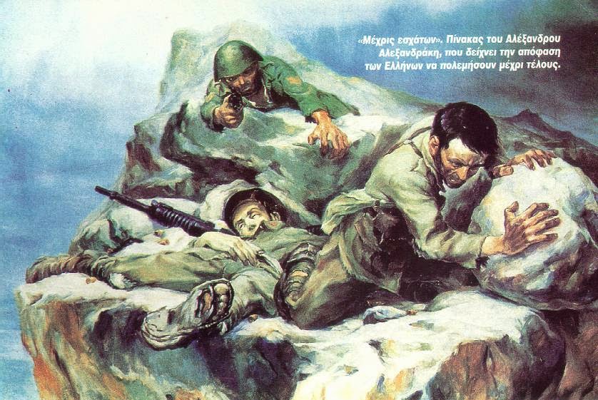 Ο Αλέξανδρος Αλεξανδράκης στους πίνακες του με μοναδικό τρόπο, αποθανάτισε τις μάχες των Ελλήνων εναντίον των Ιταλικών στρατευμάτων. Ο Αλεξανδράκης πολέμησε στην Αλβανία ως δεκανέας πυροβολικού. Τα σκίτσα του τα έκανε ανάμεσα στις μάχες και στην ανάπαυλα. Αργότερα έφτιαξε τους πίνακες με λάδι. Το τεράστιο ταλέντο του φαίνεται στον τρόπο με τον οποίο απεικόνιζε σκηνές από μάχες την στάση των στρατιωτών ακόμα και των αλόγων από μνήμης….