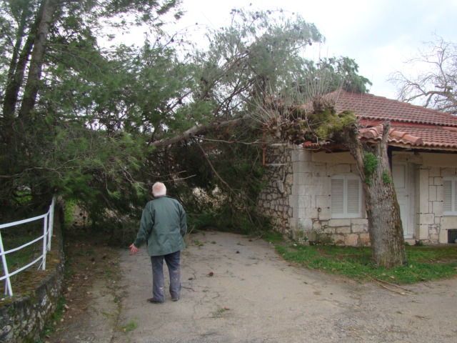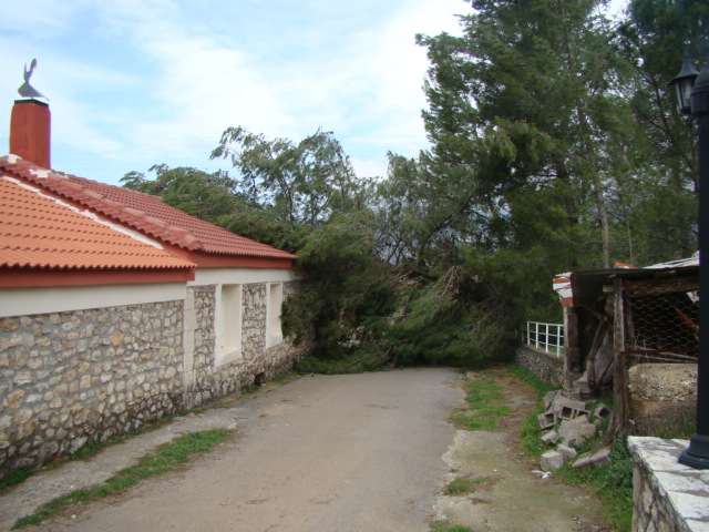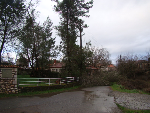 Οι πρωτόγνωρα ισχυροί άνεμοι και η μεγάλη κακοκαιρία δημιούργησαν προβλήματα στο χωριό, κυρίως στην ηλεκτροδότηση. Εχθές από τον δυνατό αέρα ξεριζώθηκαν τρία πεύκα από τον περίβολο του σπιτιού της οικογένειας του συγχωριανού μας κ. Γιώργου Σπανομίχου.