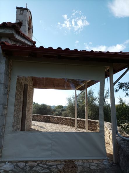 Στο γραφικό εκκλησάκι της Ζωοδόχου Πηγής του χωριού μας τοποθετήθηκε καλαίσθητη προστατευτική τέντα στην βορεινή πλευρά του προαύλιου χώρου του ναού . Αυτό θα εμποδίζει την βροχή ή τον δυνατό αέρα να σβήνει τα κεριά από το μανουάλι έξω από την εκκλησία και θα προστατεύει τους πιστούς.