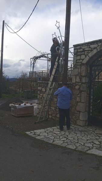 Ο πρόεδρος του συλλόγου μας Τάσος Αναστόπουλος μαζί με τον πρόεδρο της κοινότητας Γιώργο Γεωργόπουλο, επισκεύασαν τα χριστουγεννιάτικα στολίδια και στόλισαν διάφορα κεντρικά σημεία στο χωριό.